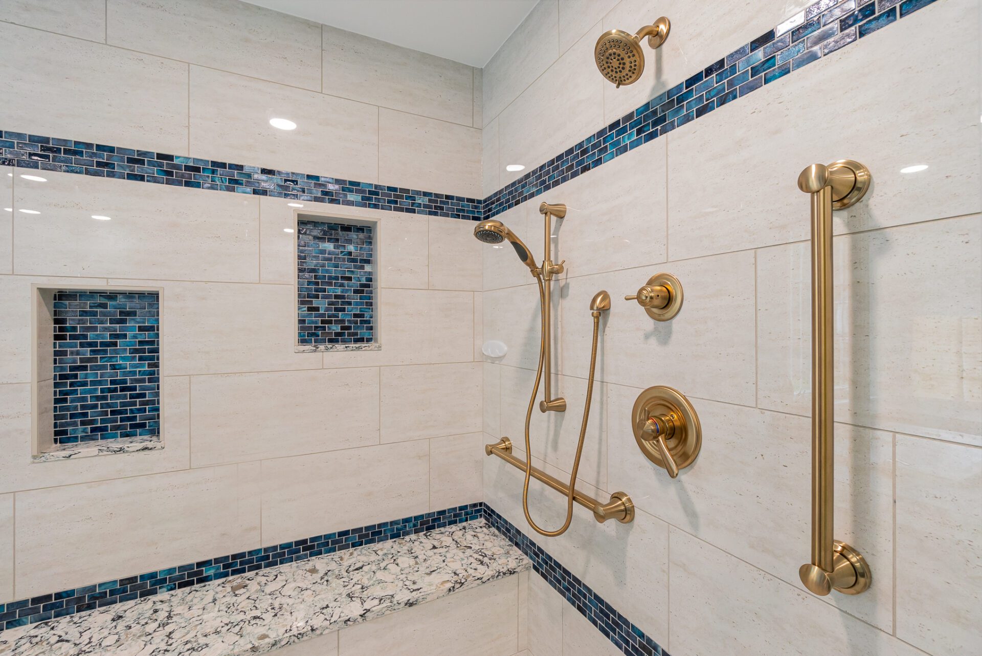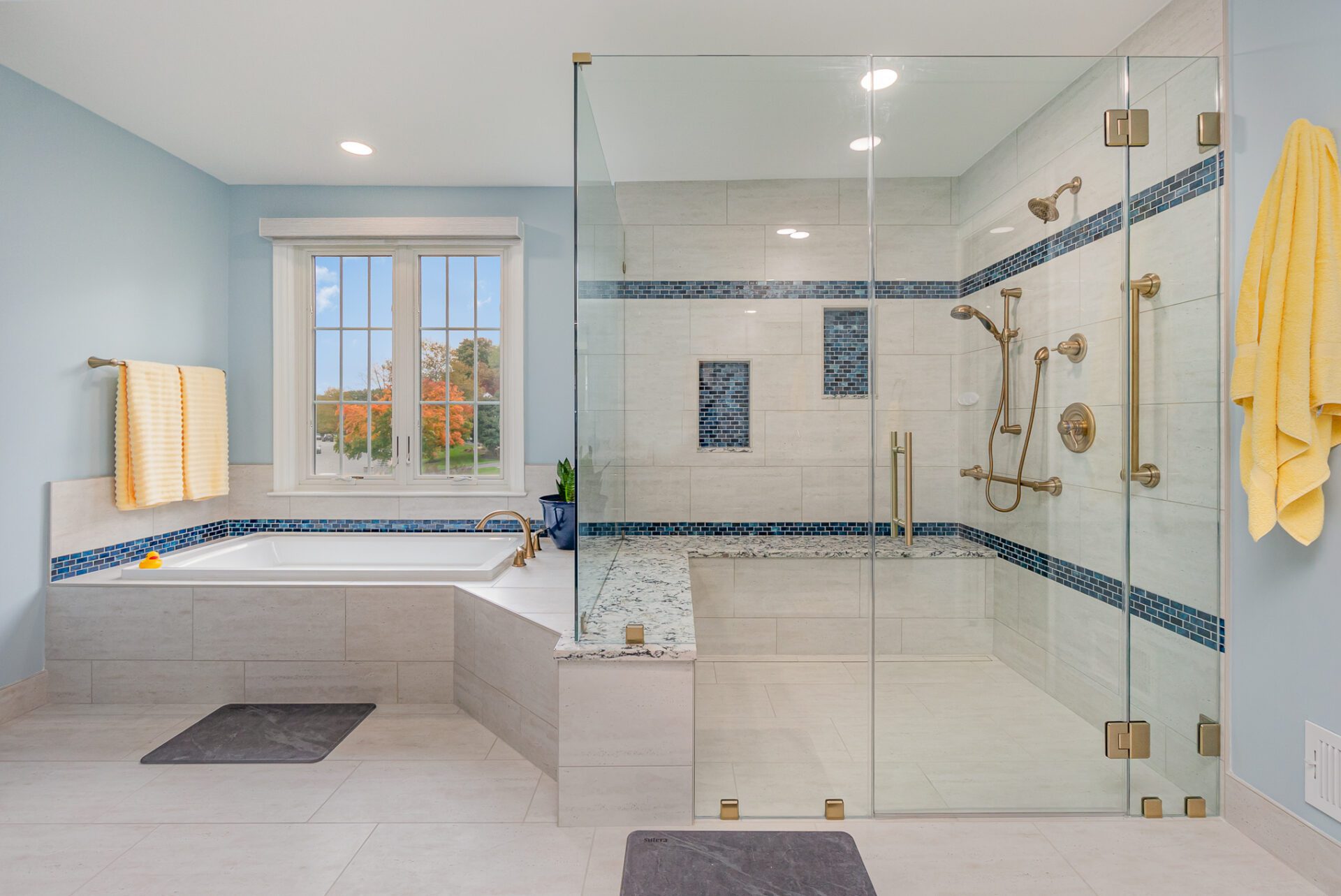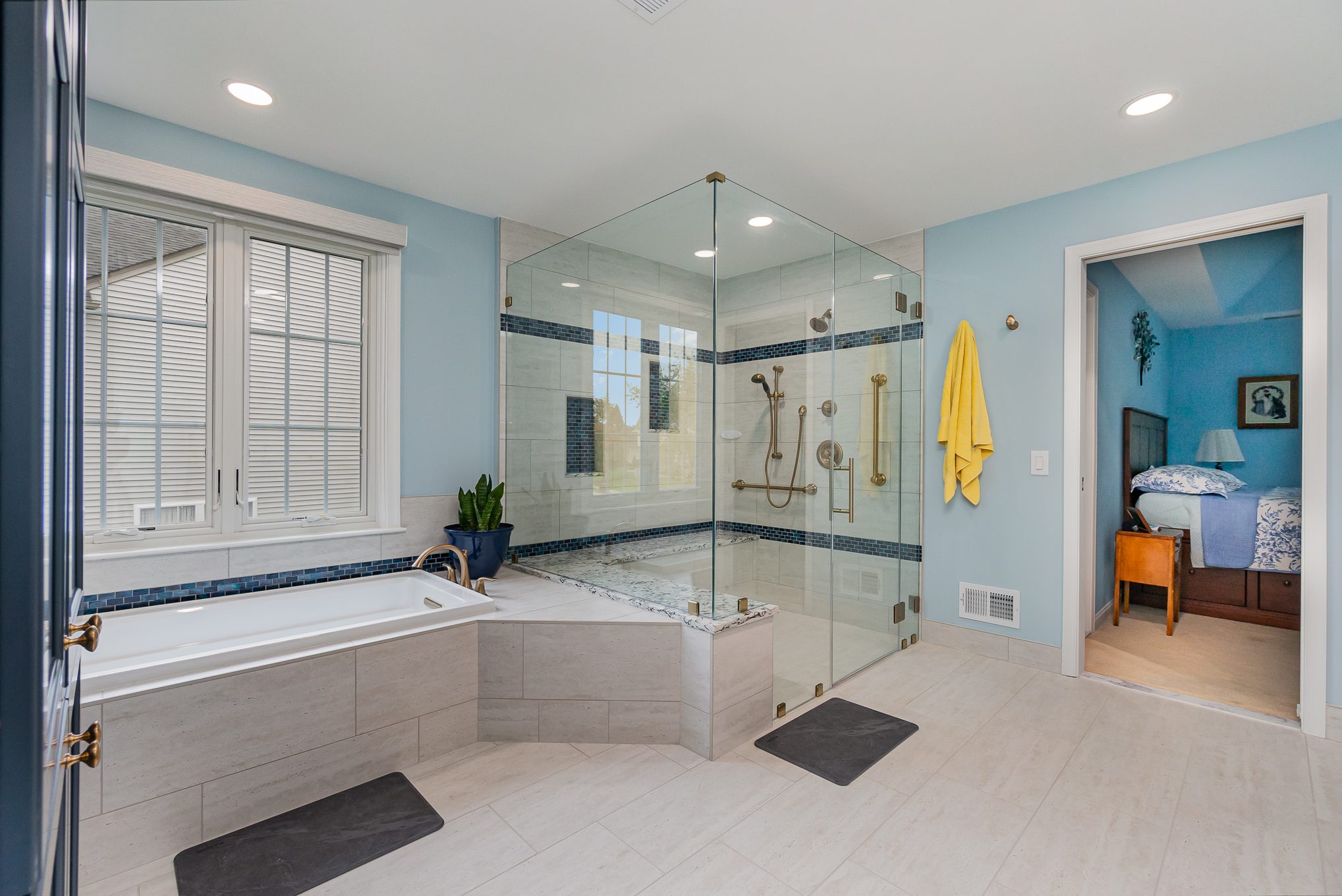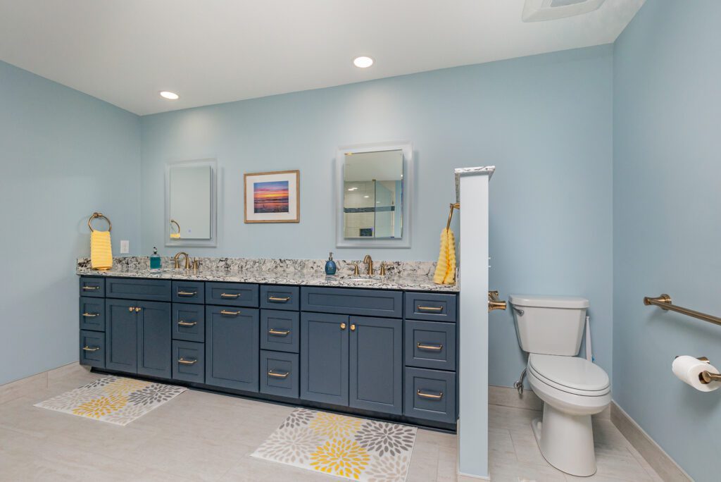 This 25-year-old builder grade bathroom was due for a major upgrade in both function and design. The jetted tub was a useless space hog since it did not work and leaked. The size of the shower had been dictated by the preformed shower pan and not the desire of the homeowner. All materials and finishes were outdated.